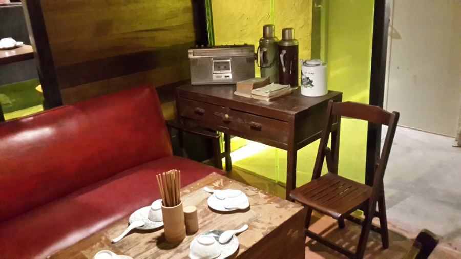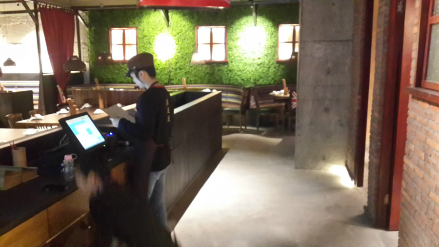 文藝的餐桌,有特色的餐具,空氣中彌漫著復(fù)古的氣息。服務(wù)員使用觸屏點菜機點菜下單。