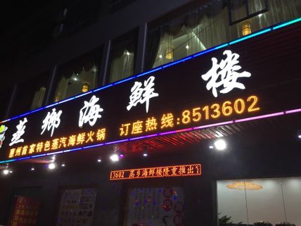 蒸鄉(xiāng)海鮮樓,是一家主打蒸汽海鮮火鍋的大酒樓,位于惠東黃埠鎮(zhèn)汽車客運(yùn)站對面。蒸鄉(xiāng)海鮮樓有兩層樓,面積有幾千平方,內(nèi)設(shè)包房,承接宴席,商務(wù)宴請,裝修高檔,服務(wù)周到。一樓是海鮮池,客人可以直接在海鮮池挑選海鮮,然后給廚房加工。蒸鄉(xiāng)海鮮樓為惠州首家蒸汽海鮮火鍋店,這里的蒸汽火鍋與傳統(tǒng)的“打邊爐”吃海鮮的方式完全不一樣,所有的火鍋工具換成了蒸汽鍋裝置,利用蒸氣鍋裝置蒸汽加熱的方式,中間放著隔層架,隔層架上放置海鮮、蔬菜等食材進(jìn)行蒸煮。