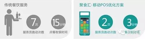 服務(wù)員可手持聚食匯·移動POS直面顧客進行點單、收銀操作,避免服務(wù)員來回往返于餐桌和收銀臺之間,縮短服務(wù)時間并提高用戶就餐體驗,聚食匯·移動POS點餐收銀比傳統(tǒng)點餐收銀平均每桌節(jié)約時間12分鐘。