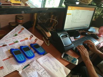 阿洪食府,位于惠州青塘,火車站對面,主營客家菜,海鮮,承包宴席,多年的餐飲經(jīng)歷積累了眾多的熟客。阿洪食府使用無線點菜寶,樓面部長用手持點菜寶下單,廚房配置出單機打印分單,劃菜部出劃菜總單,收銀臺用觸摸屏收銀機收銀。